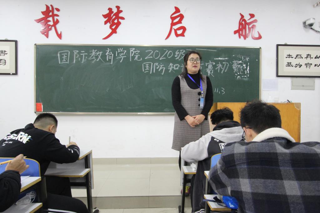 为纪念“九一八”事变爆发89周年,庆祝新中国成立71周年,进一步增强同学们的国防观念和国家安全意识,激发同学们为中华民族伟大复兴而奋斗的使命感。2020年11月3日,信阳师范学院英国365上市公司于逸夫楼教室举办了国防知识竞赛初赛,我院学生干部协助辅导员余艳楷、沈艳霞、许孟杨、吴浩老师一起监考。