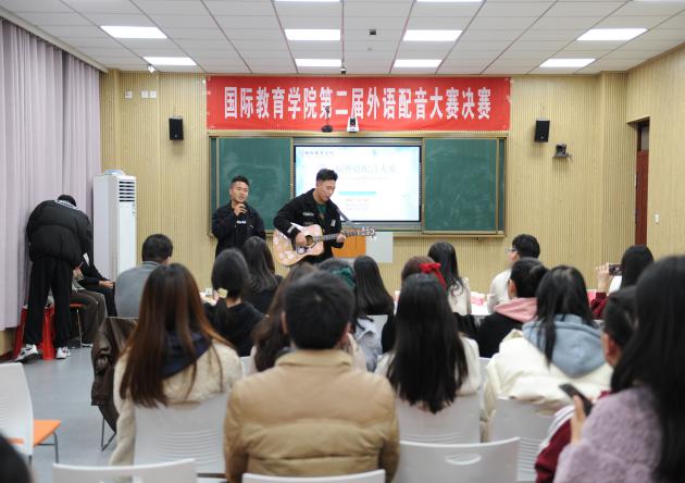 本次活动以作品配音为主,进入决赛的选手们,需要各自准备一份4分钟左右的英文或韩文影视剧消声片段,并在现场进行配音。本次配音大赛在经过精心的准备后,各组选手们在台词中加入了一些自己的创意创新,将自己的想象力和创造力发挥的淋漓尽致,配音模仿的惟妙惟肖,他们抑扬顿挫的语调,时而激情高昂,时而活泼可爱,赢得大家的阵阵掌声和尖叫声。尤其是尚子龙同学的经典动画串烧配音,把在场观众的激情充分调动起来,连评委老师们都不由地投入到精彩的动画世界中,仿佛身临其境般,带来了别样的视听盛宴。最后,本次大赛在李则霖、张文元两位同学的歌声《Lemon tree》中落下帷幕。