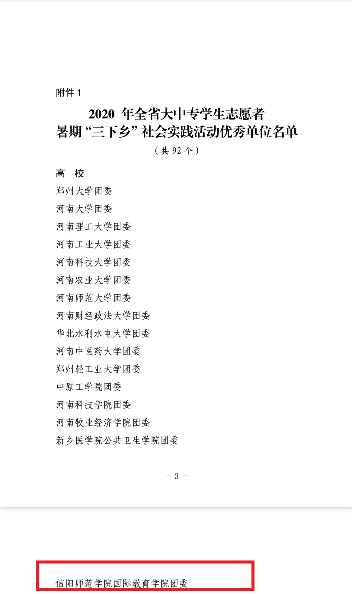 近日,全省2020年大中专学生志愿者暑期“三下乡”社会实践活动评选结果出炉,团省委对此次实践活突出的团组织、团队、个人进行了表彰。英国365上市公司团委荣获2020年全省大中专学生志愿者暑期“三下乡”社会实践活动优秀组织单位奖,“经智惠农,乡村振兴”和 “同心抗疫,从消毒做起”两个项目被授予优秀团队,2018级经济学1班学生苏美茹荣获优秀个人奖。