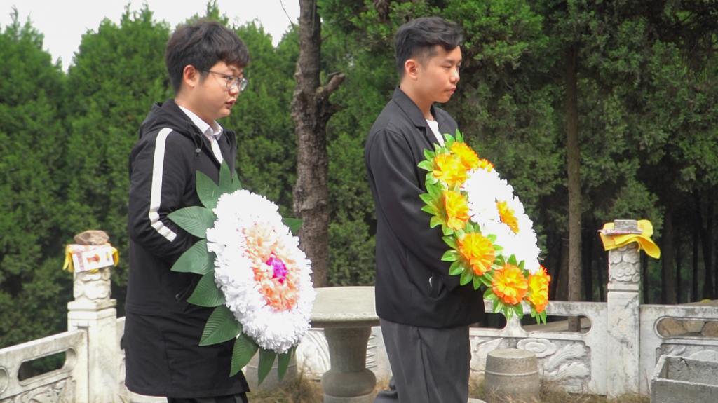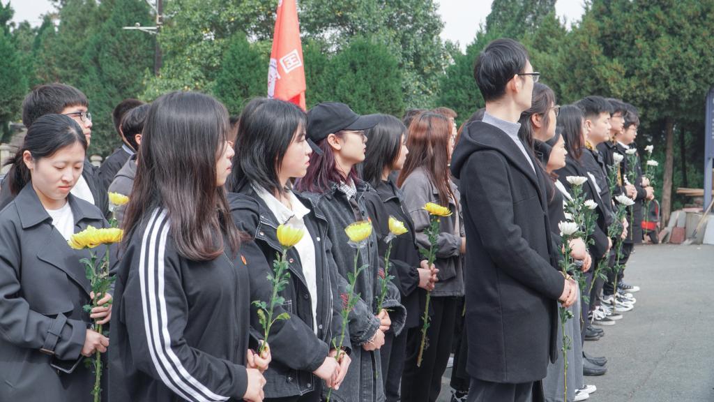 学生代表、青年团员朱琳发言,她说,正是由于革命先烈们的不懈奋斗和英勇牺牲,才让中华民族在战火中涅槃,让新中国有了站起来、富起来、强起来的伟大事业。作为新时代的大学生我们应学习革命先烈的精神,从而使自己成为具有高尚品质和良好道德修养的合格建设者和接班人。接着,沈艳霞老师讲话,她向同学们介绍了曹灿章将军的丰功伟绩,并勉励同学们不忘先烈,学习高尚的品格和无私的精神,要树立远大理想,坚定爱党、爱国、爱社会主义的信念,勇担重担,为把我国建设成为社会主义现代化强国,实现中华民族的伟大复兴中国梦而奋斗。仪式结束后,同学们自发清扫了陵园内部的垃圾,以倡导文明祭祀之风。