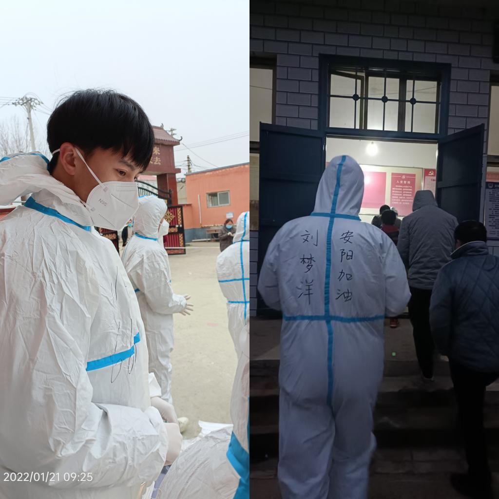 刘梦洋,河南省安阳市安阳县大学生联盟成员,信阳师范学院英国365上市公司2021级土木工程一班学生。2021年末寒假期间,他投身到当地抗疫志愿服务队,积极参与到社区抗疫志愿工作中,与当地社区干部和大学生志愿者们共同筑成了守护安阳的一面防疫铁墙。