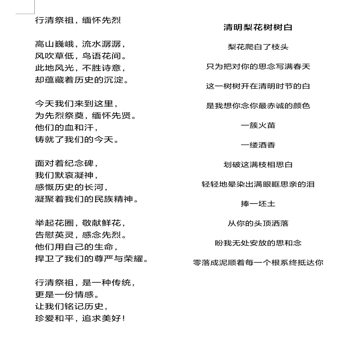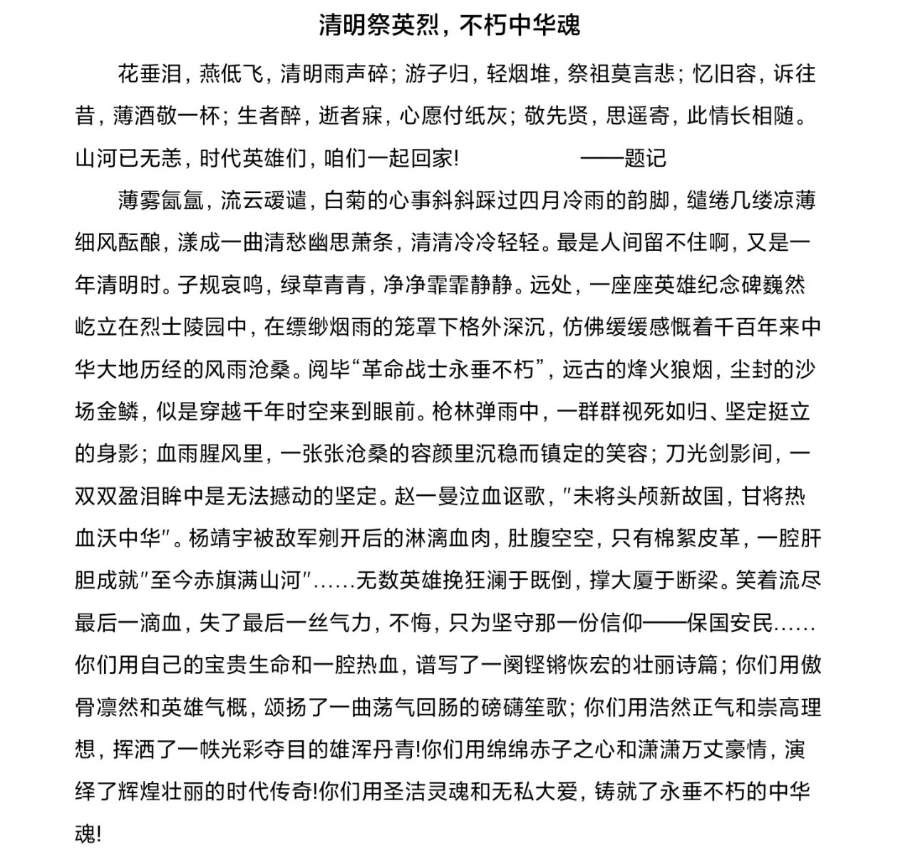 以诗歌寄情思,缅怀先祖英烈。“行清祭祖,缅怀先烈”诗歌创作大赛于4月3日在线上开展。鼓励同学们在借诗歌抒发对先祖血脉相依的追思与感念、对先烈精神的崇尚和守望的同时,也要充分弘扬英烈精神,厚植家国情怀。