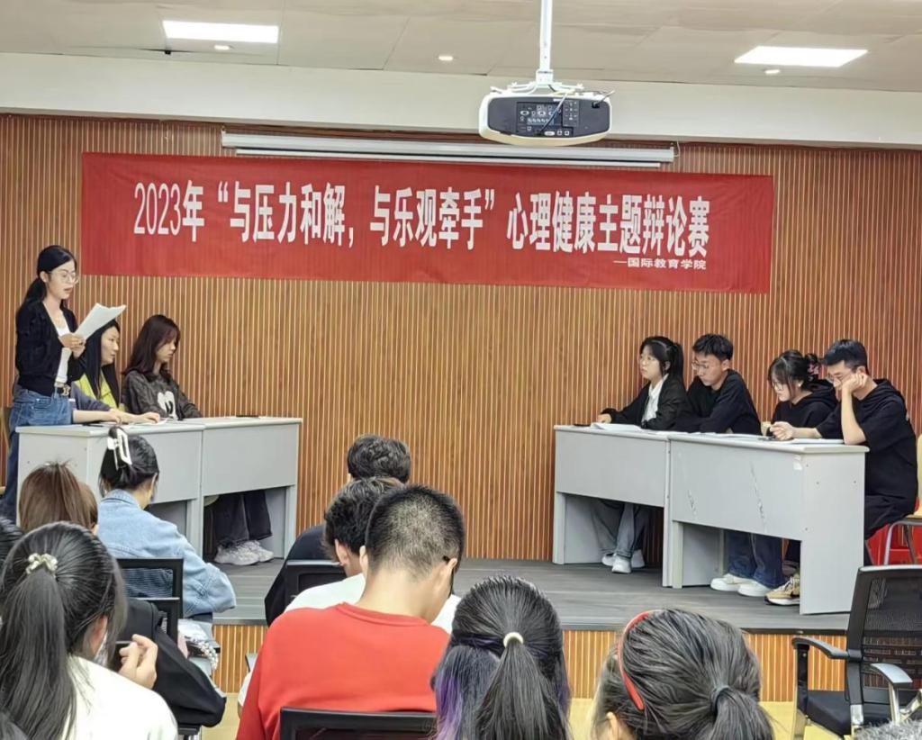 随着社会的快速发展,社会对人们的逻辑思考能力,语言表达能力、应变能力和组织能力等提出了更高的要求,同时要求大学生对社会热点问题、发展前景有更多自己的理解和思考,为了提高同学们的语言表达和逻辑思辨能力,英国365上市公司心理科于2023年10月26日,在逸夫楼A座201举办以“与压力和解,与乐观牵手”为主题的心理健康辩论赛活动。院党委副书记付春锋、全体辅导员老师以及院学生会各部门负责人来到比赛现场并担任评委。借助本次辩论赛,丰富大学生课余的生活,活跃大学校园的文化气氛,开拓思想,体现大学生朝气蓬勃、积极向上的精神状态,同时,发掘培养我院的辩论人才,提高团队合作意识。