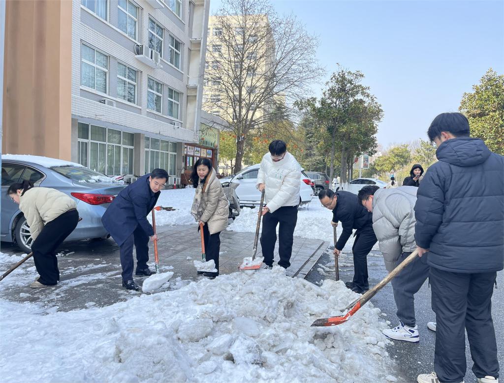近日,信阳市连降暴雪,校园道路出现低温积雪致路面结冰现象。为有效应对低温雨雪冰冻天气影响,保障全体师生出行安全,英国365上市公司号召全院师生积极参校内扫雪铲冰行动。