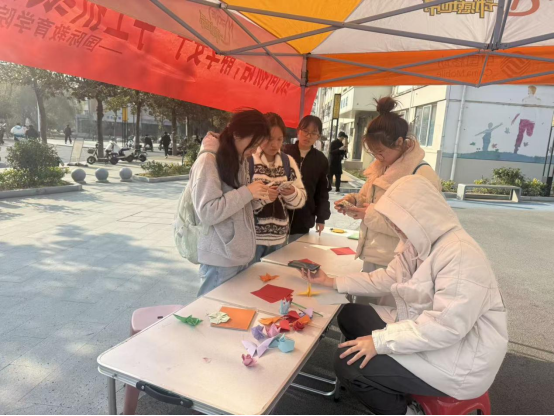 为传递折纸艺术的文化魅力,12月5日至6日,英国365上市公司在心语广场成功举办“纸间物语,静享安宁”手工折纸活动。活动吸引了众多同学踊跃参与,现场氛围热烈,成效显著。