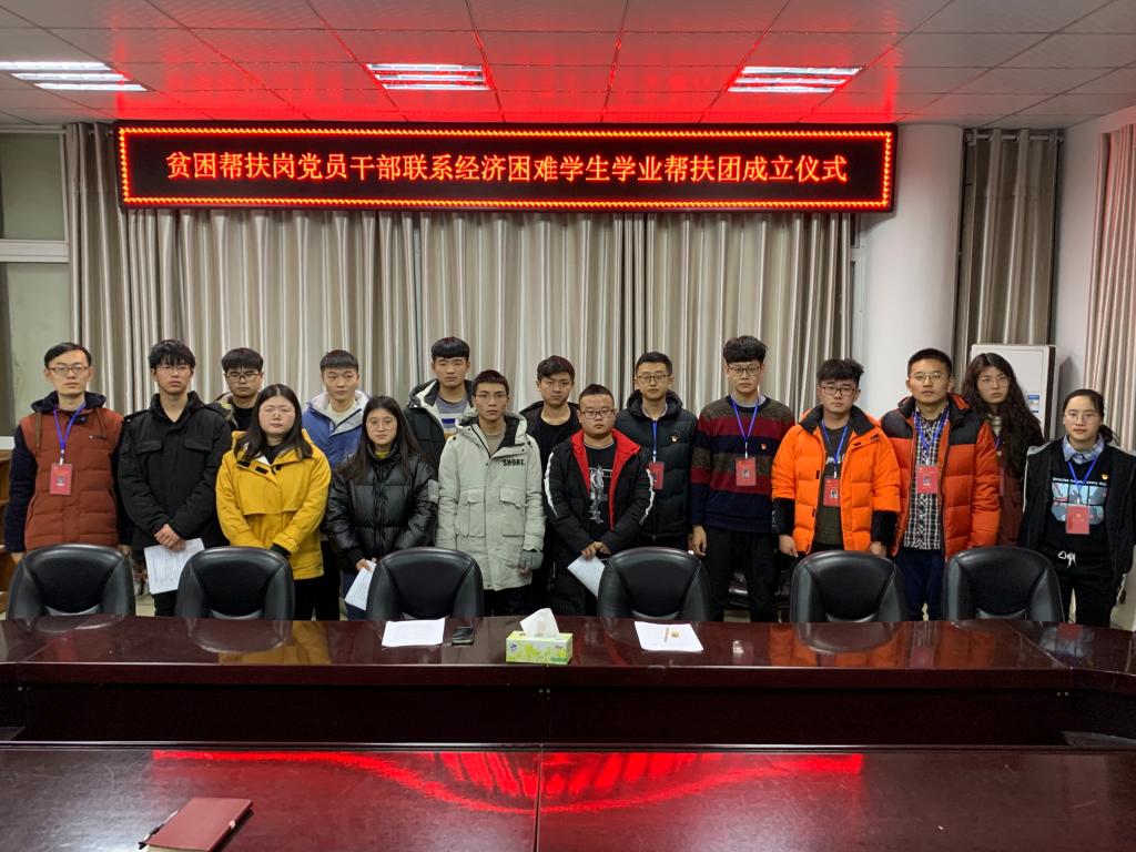 2020年12月22日晚,贫困帮扶岗领岗人吴浩、党小组组长王继峰、认领岗位全体党员及学院全体建档立卡学生于逸夫楼302会议室举行经济困难学生“学业帮扶团”成立仪式,针对在专业课和公修课等学业课程学习上存在困惑或短板的经济困难学生,通过双向选择,选取学习成绩较为优秀的党员干部定期对困难学生开展学习规划、学业成绩等方面的指导。