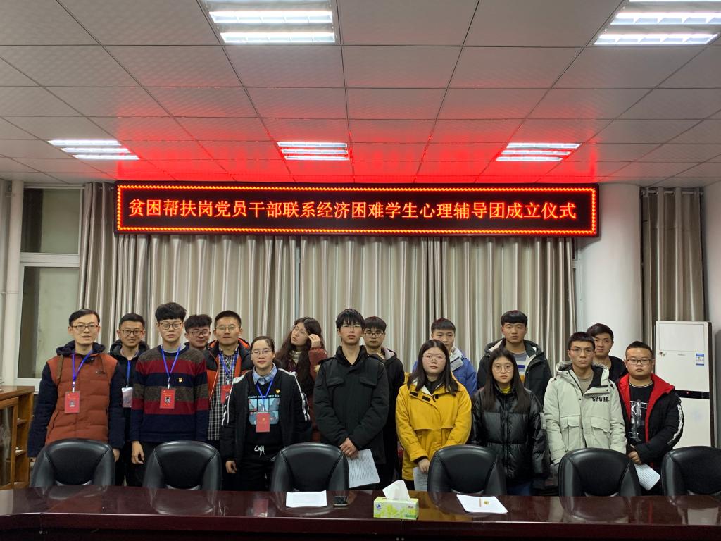 2020年12月23日晚,贫困帮扶岗领岗人吴浩、党小组组长王继峰、认领岗位全体党员及学院全体建档立卡学生于逸夫楼302会议室举行经济困难学生“心理辅导团”成立仪式,主要面向经济困难新生,通过双向选择,确立“一对一”帮扶,帮助他们化解因学业、生活、人际交往等引起的心理问题,尽快适应大学生活。