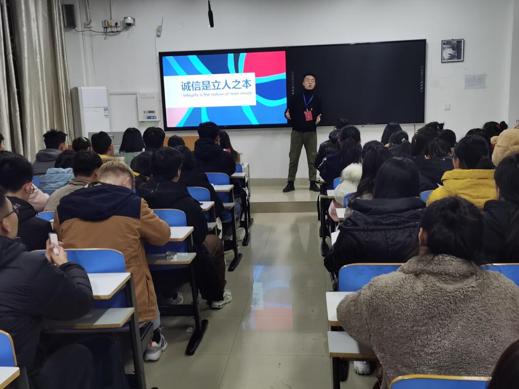 2020年12月7日晚,贫困帮扶岗党小组成员郭洋在逸夫楼102教室向全体建档立卡学生及2020级部分新生代表做了“校园地诚信贷款”宣讲,以自身经历,详细介绍了校园地贷款的首贷、续贷程序;还款时的注意事项;贷款失信对个人的影响,引导大家提高征信意识、金融意识、风险意识、法律意识,树立正确消费观念。