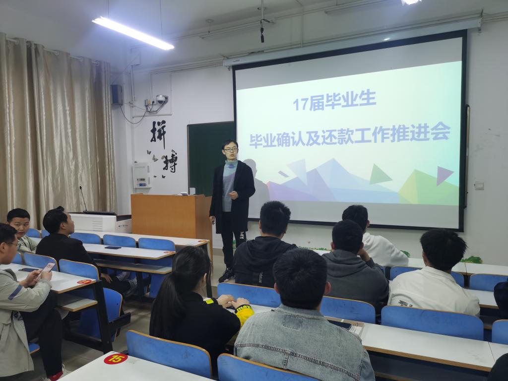 学院分管资助工作的吴浩老师向2017级贷款毕业生详细讲解了国家开发银行提前还款申请操作流程、还款方式、还款步骤、零利息提前还款时间节点、利息起算日期、毕业确认相关材料填写要求等内容,他以毕业生失信恶意拖欠贷款对个人征信带来严重影响的实例,强调贷款毕业生要按时还款,提倡有能力、有条件的贷款毕业生离校前及时还清助学贷款。希望获得助学贷款的学生珍惜国家为家庭经济困难学生带来的帮助,积极履行贷款偿还义务,同时要懂得感恩,在踏入工作岗位后,以勤奋付出回馈社会。