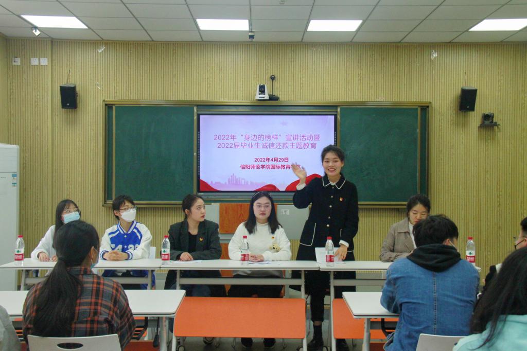 为全面落实国家资助政策,进一步拓展学生资助工作的育人功能同时充分发挥国家奖学金获得者、校园明星、自强之星等青年榜样的先进典型导向作用,我院于4月29日在逸夫楼201召开了2022年“身边的榜样”宣讲活动暨2022届毕业生诚信还款主题教育活动。本次活动由竹梅老师主持,2022届生源地助学贷款毕业生参加本次活动。