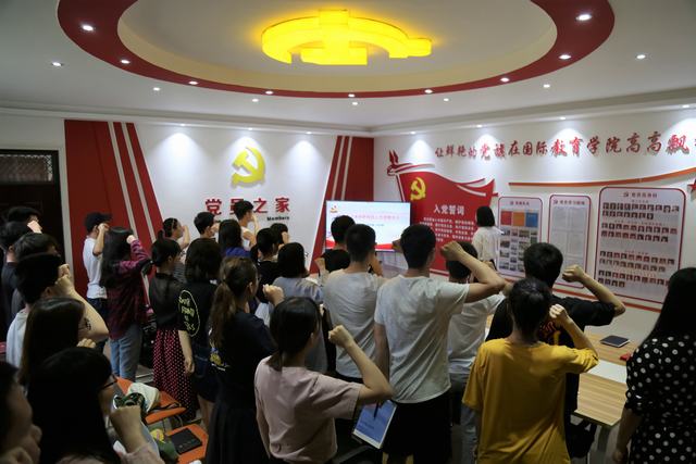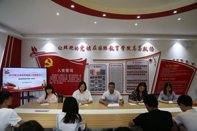 6月11日下午,英国365上市公司学生第一党支部、中外文化交流协会党支部以及学生第二党支部相继在逸夫楼202会议室举行2019年上半年新党员入党宣誓大会。学院党委副书记姚新春参加了各支部宣誓大会。