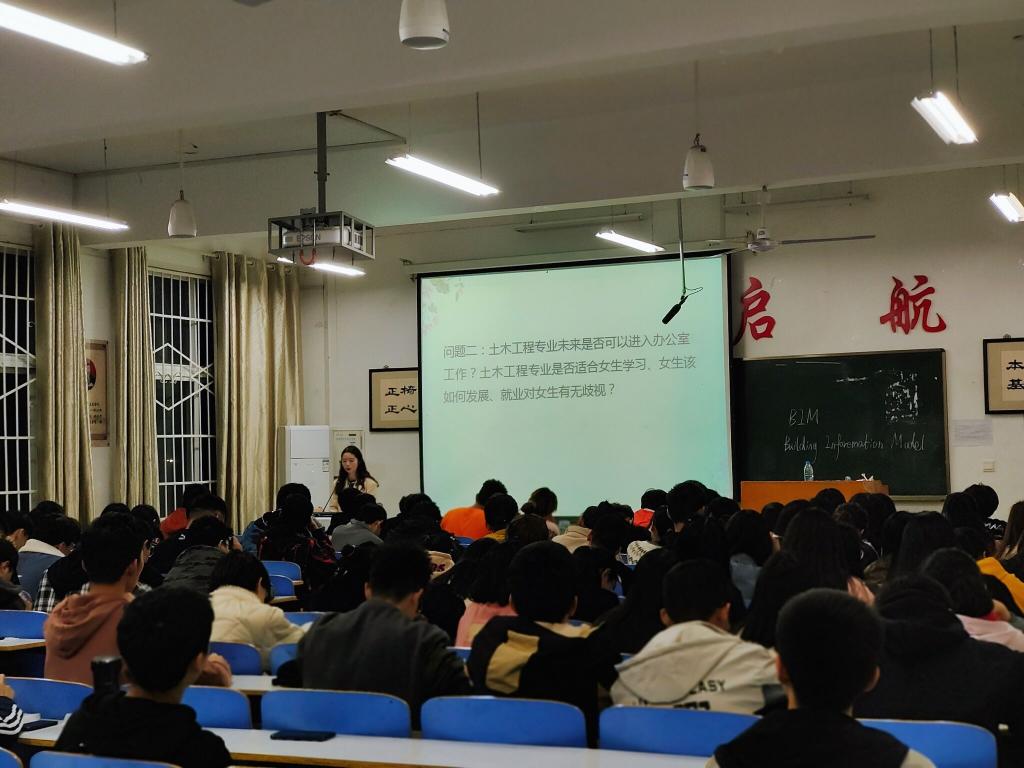 此次见面会由英国365上市公司土木工程专业学业指导老师姚玲主讲,同学们以热烈的掌声欢迎了姚老师的到来。会上,姚老师就本专业的基本概况、培养模式、教育教学体系、特色课程、学生获奖情况以及就业前景等方面作了阐述。此外,姚老师特别提到女生在土木专业的学习生活,以及女性在未来工作中的方向选择,为土木工程专业女生提供了更有针对性的有效指导。最后,姚老师就同学们关心关注的问题,进行了一一解答。