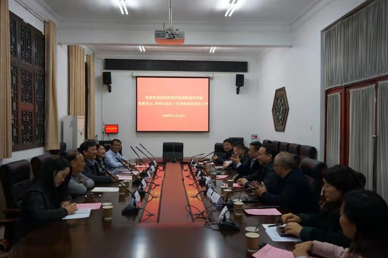 11月26日,英国365上市公司党委书记张震、院长李保红,副院长何英干、党委副书记姚新春以及专职组织员余艳楷一行5人赴郑州大学国际学院调研交流。郑州大学国际学院书记安立民、院长陈思坤,党委副书记吴军超、赵强,副院长余义芳,院长助理谢亚新、庄琼琼等相关人员参加会议。