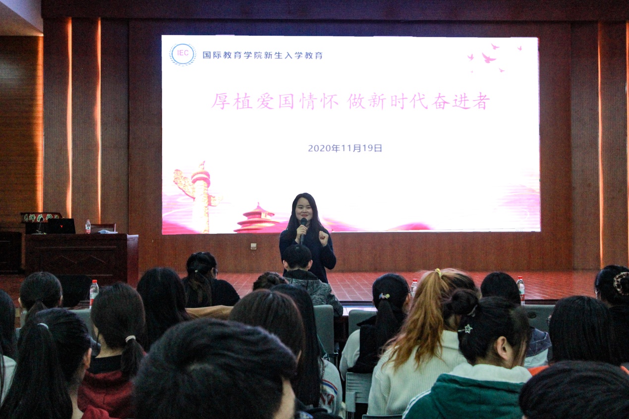 为做好青年学生思想政治教育工作,增强学生爱国意识,厚植学生家国情怀,11月22日晚,我院于逸夫楼报告厅组织开展了以“厚植爱国情怀,做新时代奋进者”为主题的新生入学教育活动,主讲人余艳楷、新生辅导员及2020级全体学生参与本次活动。