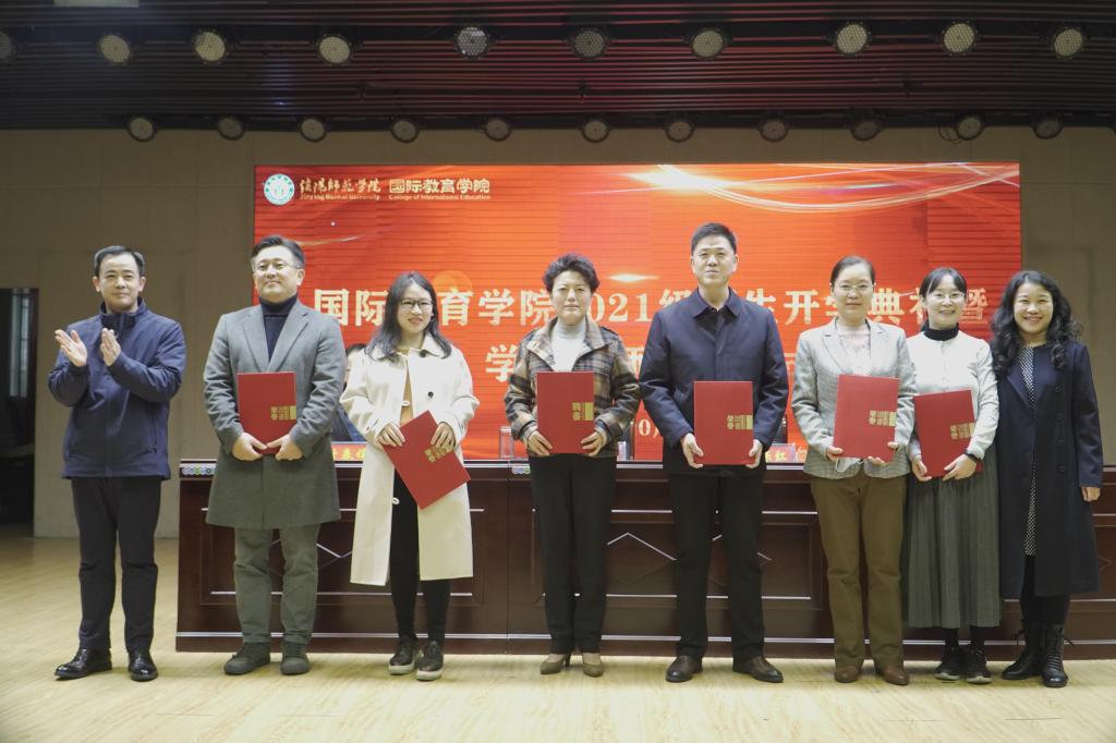 副院长姚光金宣读了相关文件和2021级新生学业导师名单以及2020—2021学年优秀教师名单。院党委书记李舟、院长李保红为优秀教师颁奖,并向学业导师颁发了聘书。
