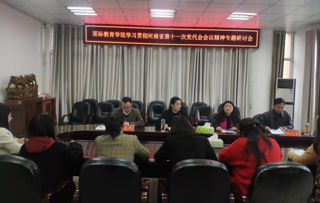 11月16日下午,全体教职工召开“学习贯彻河南省第十一次党代会精神”专题研讨会,围绕省第十一次党代会重大意义、鲜明主题、成就经验、主要任务和重点问题,结合分管工作,畅谈心得体会。大家一致认为,要把学习省第十一次党代会精神同岗位职责及工作实际密切结合,把学习成果转化为服务学院发展、学生成长成才的实际行动。李舟做总结讲话,充分肯定了大家的发言,要求全院教职工以省第十一次党代会精神为指导开展工作,认真吃透内涵,切实把握本质,完整准确理解党代会提出的新思路、新任务、新要求、新举措,从会议精神中汲取干事创业的养分,把思想和行动统一到学院事业发展上来,把学习效果切实转化为推动学院中外合作办学事业高质量发展的实际成效。
