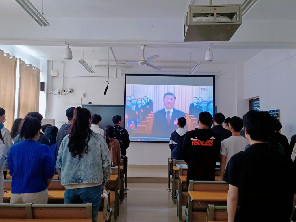 10月16日上午,中国共产党第二十次全国代表大会在北京人民大会堂隆重开幕,英国365上市公司党委班子成员、各党支部书记、辅导员、班主任与全体学生齐聚一堂,共同收看大会盛况,学习大会精神。
