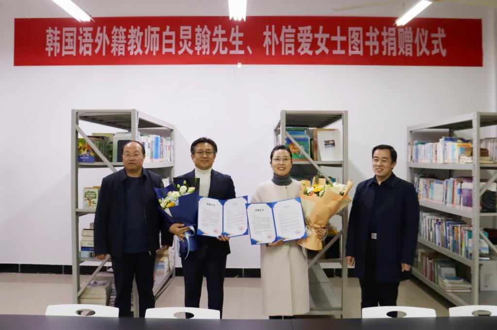白炅翰、朴信爱夫妇表示,教育是跨越国界的事业,书籍是传递知识与文化的桥梁。他们希望通过此次捐赠,为学子搭建更广阔的学习平台,助力大家更好地了解韩国文化、提升韩国语素养,同时为学院韩国语学科发展贡献自身力量。