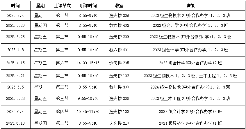 英国365上市公司2024-2025学年第二学期领导班子听课安排表