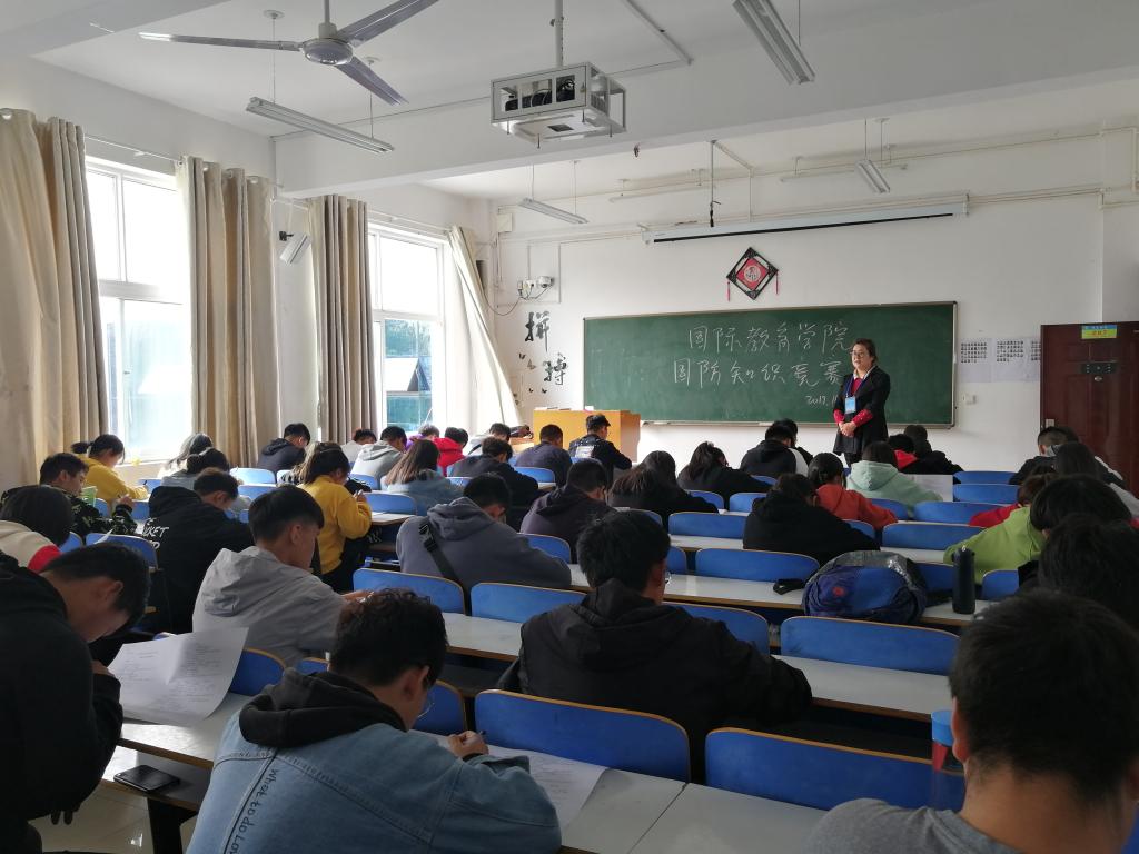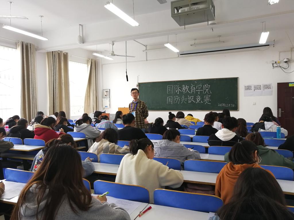 为增强我院学生的爱国意识、普及大学生国防知识,11月7日中午,我院在逸夫楼206、207、209教室举办了国防知识竞赛(初赛)。2019级新生班主任余艳楷、吴浩、沈艳霞三位老师和学生干部一起担任监考老师。