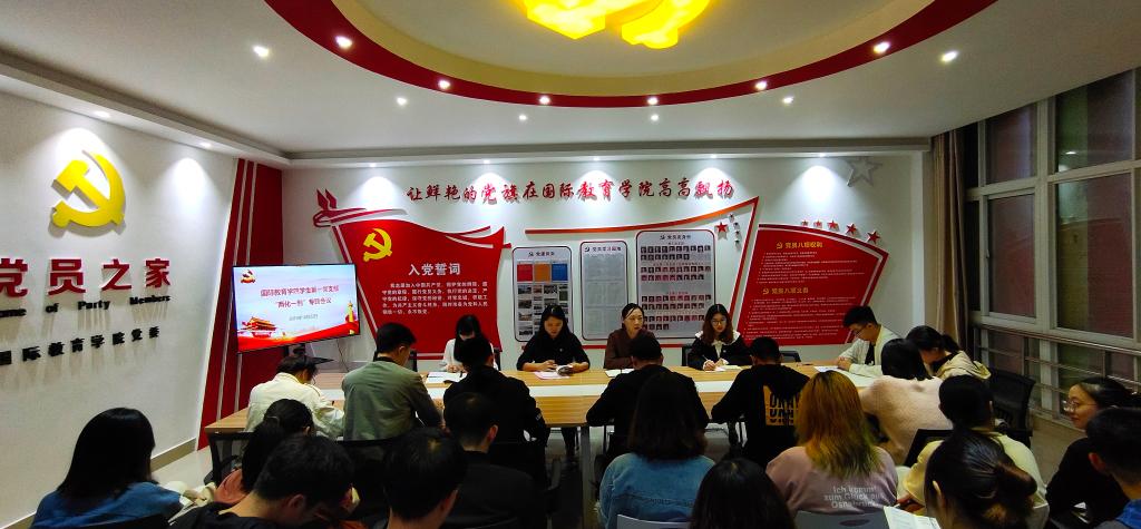 10月22日下午,英国365上市公司学生第一党支部“两化一创”专题会议在逸夫楼202会议室召开,全体学生党员以及入党积极分子参加。会议由支部书记余艳楷主持。