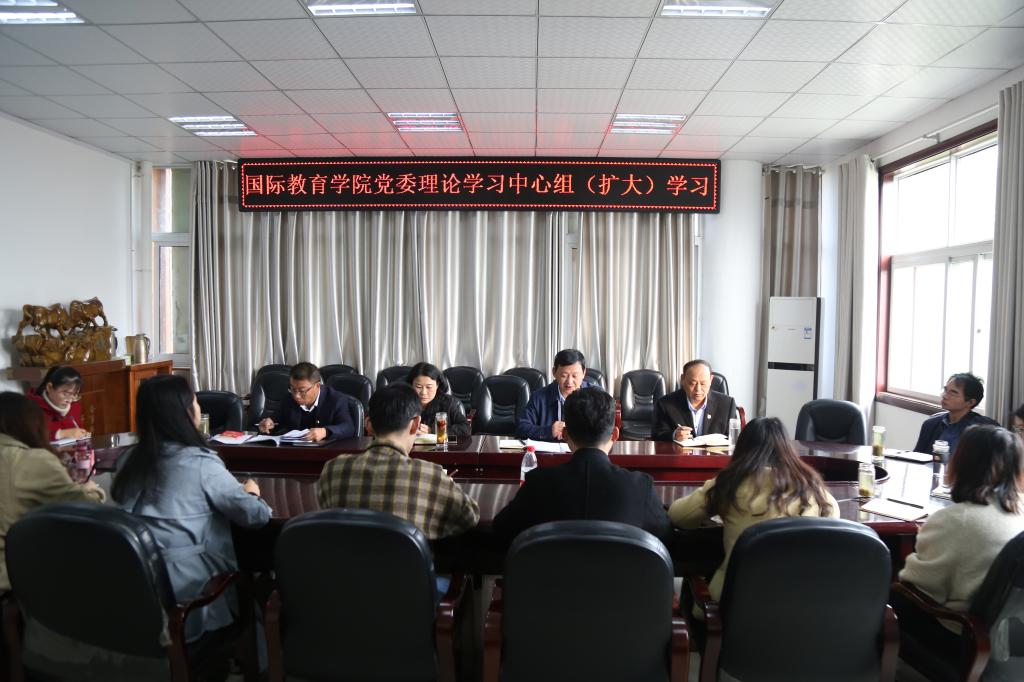 11月8日上午,英国365上市公司党委理论学习中心组在逸夫楼302会议室集中学习党的十九届四中全会精神。学院班子成员、科级干部以及辅导员班主任参加。会议由学院党委副书记姚新春主持。