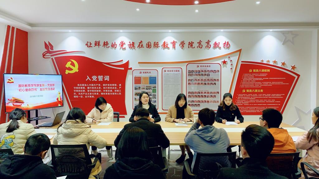 11月18日下午,英国365上市公司学生第一党支部在学院党员之家开展“初心使命四问”主题党日活动。