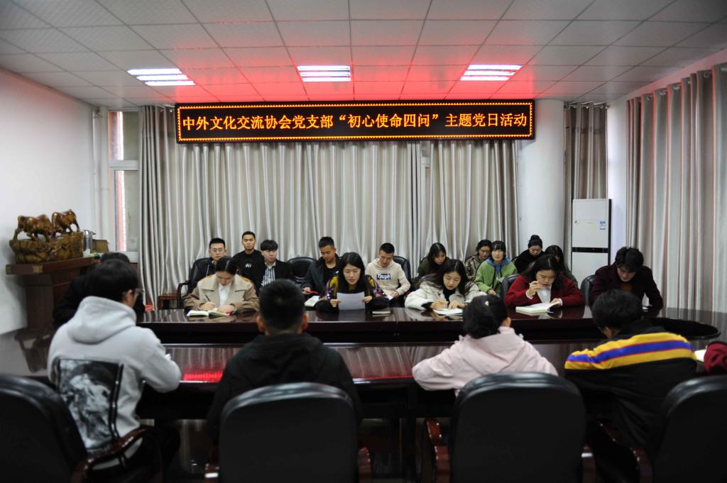 11月18日下午,英国365上市公司中外文化交流协会党支部在逸夫楼302会议室开展“初心使命四问”主题党日活动。中外文化交流协会党支部组织委员竹梅以及学生党员,入党积极分子参加。