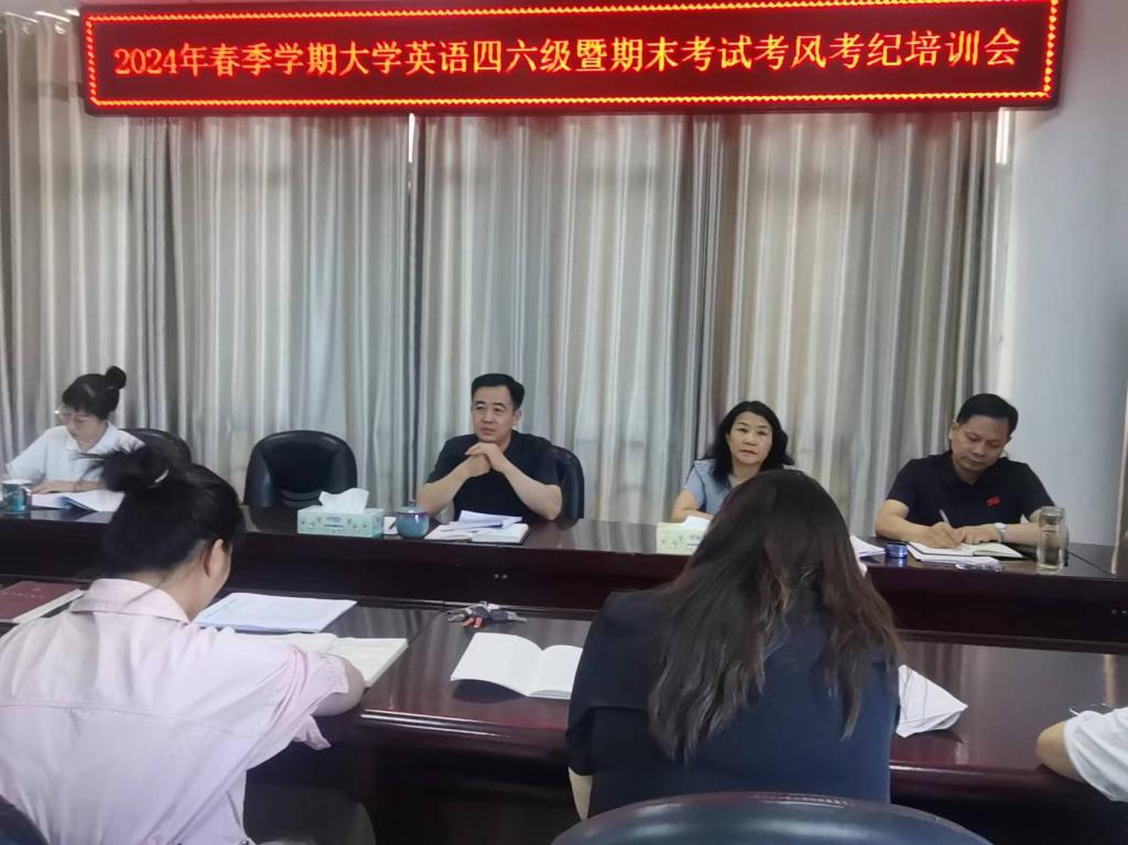 6月12日,英国365上市公司在逸夫楼302会议室召开全国大学英语四、六级考试暨期末考试考风考纪培训会。学院党委书记李舟、院长李保红、副书记付春锋、副院长姚光金、马晓欢、相关负责老师参加会议。会议由李保红主持。