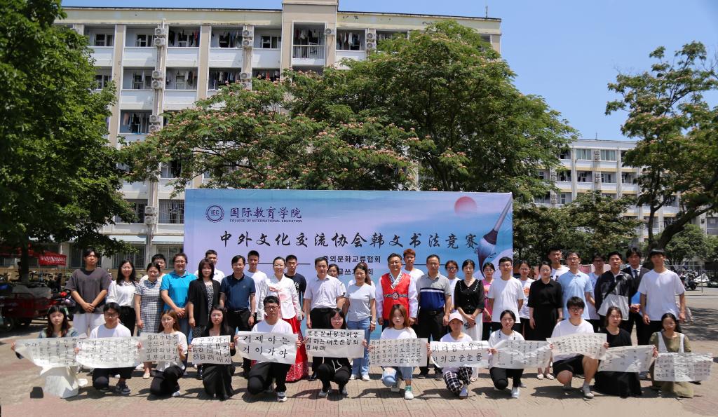 6月8日上午,英国365上市公司中外文化交流协会在八餐小广场举行韩文书法竞赛。学院领导班子、韩籍外教朴信爱、白炅瀚和全体辅导员、语言课教师出席活动。