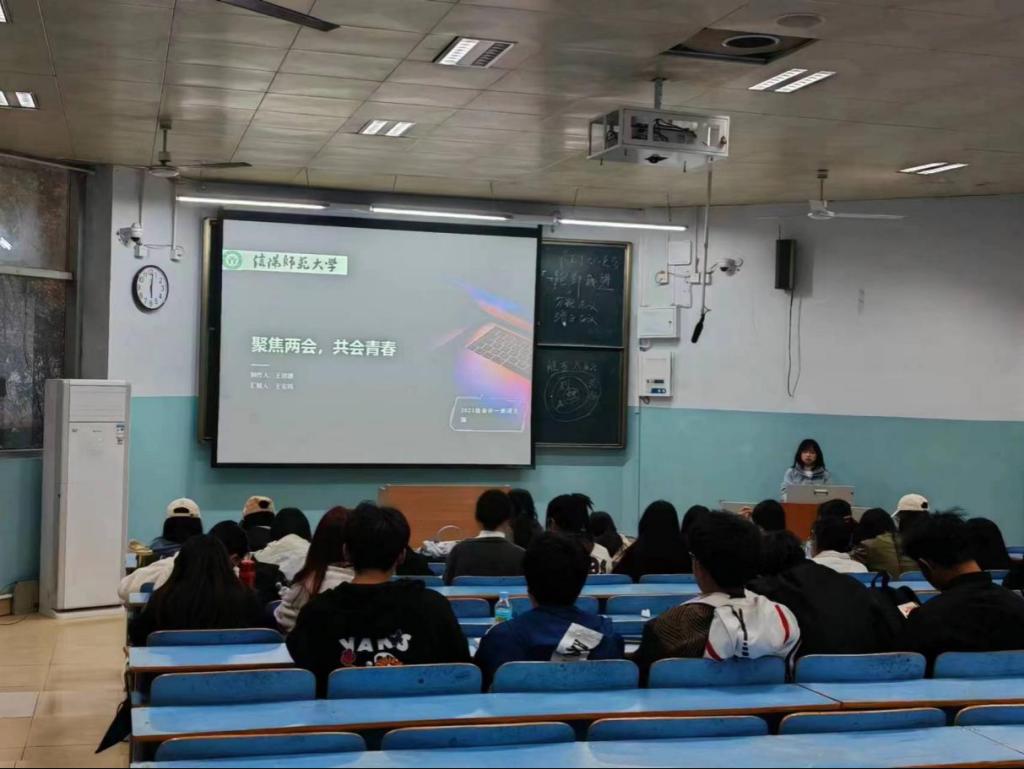 为进一步加深同学们对国家当下问题和方针政策的了解,学习并弘扬两会精神,我院各支部于2024年3月22日积极开展“聚焦两会,共会青春”主题团课活动。