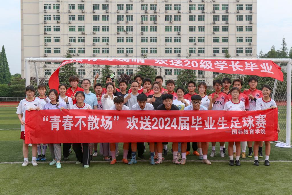 6月1日中午,我院在足球场举办“青春不散场”欢送2024届毕业生足球赛,经过短暂的热身,比赛正式开始。毕业生代表队先声夺人,利用一次快攻的机会通过精妙的传切配合首开纪录。在校生代表队则稳扎稳打,通过快速的穿插跑位撕开了毕业生代表队的防线,迅速扳回一球。随后,两支队伍互有攻防,用激烈的拼抢和精彩的进球将比赛推向高潮。最终,毕业生代表队获得胜利。