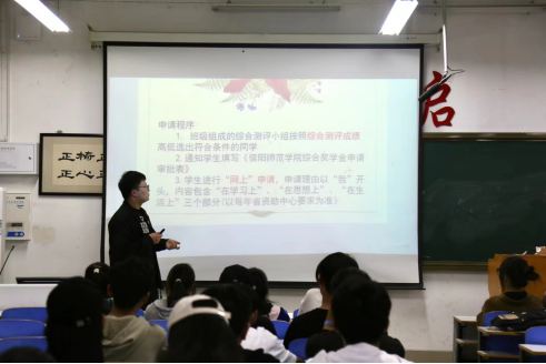 会上,英国365上市公司助贷科科长魏猛及助贷科干事胡胜楠围绕“奖、助、贷、补、免”(涵盖国家奖学金、国家励志奖学金、国家助学金、国家助学贷款、学校综合奖学金、学校单项奖学金、大学生服义务兵役学费补偿贷款代偿及退役士兵教育资助、新生“绿色通道”、勤工助学、困难学生补助、学费减免、社会性资助等)五位一体的家庭经济困难学生资助政策体系进行了详细解释,并对自开学以来助贷科进行的经济困难认定和助学金评选工作过程中发现的问题进行总结,使大家对各项资助政策和相关资助工作的开展有进一步的认识和理解,为参会学生提供了较为全面的信息和指导,为确保学院后续资助工作的顺利开展奠定基础。魏猛同学还分享了一些获得奖学金的成功经验,鼓励新生积极参与学术竞赛,社会实践和志愿服务活动,激励新生在专业知识和技能的学习上多下功夫。
