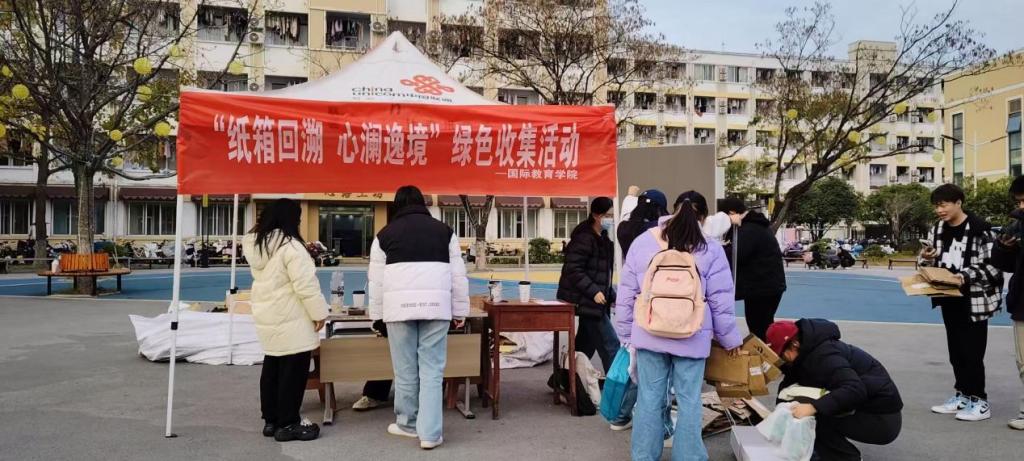 为了推广环保理念,鼓励学生参与废纸箱的回收与再利用,2024年12月5日至12月6日,英国365上市公司于心语广场成功举办了“纸箱回溯·心澜逸境”绿色收集活动。