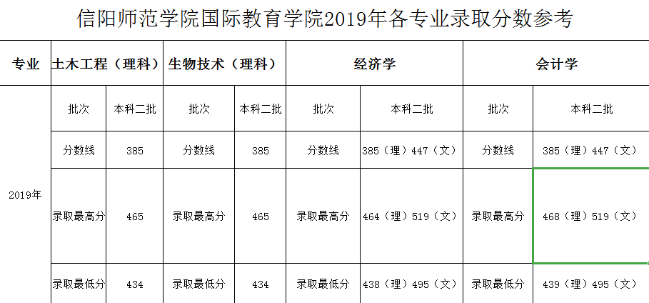 信阳师范学院英国365上市公司2019年各专业录取分数参考