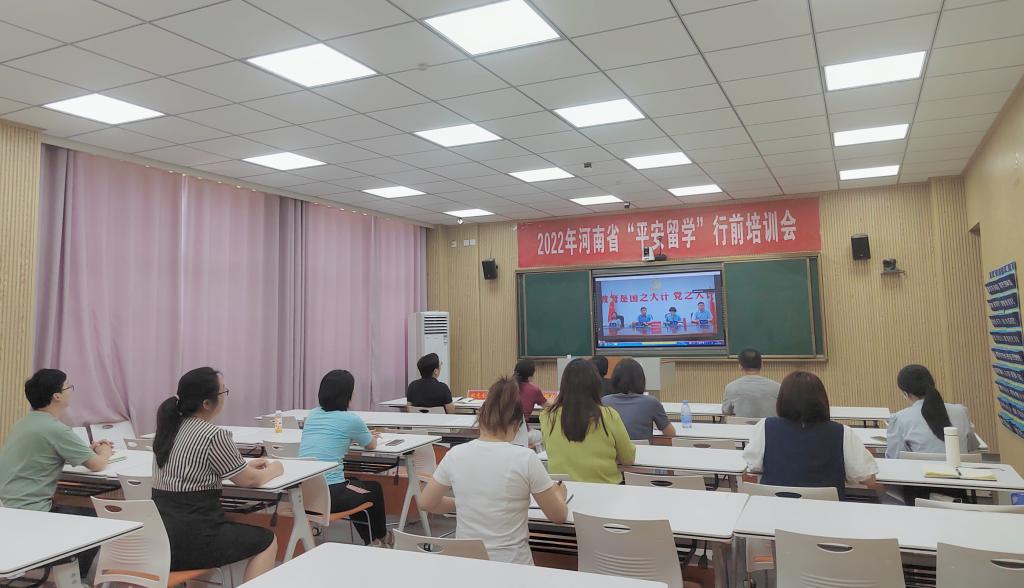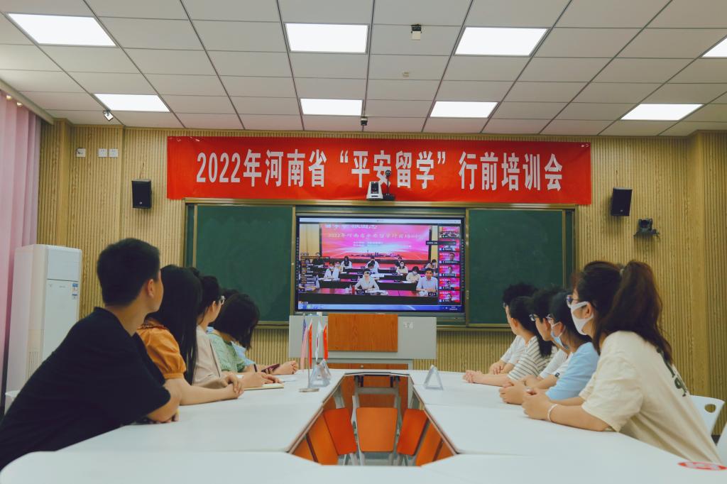 2022年5月31日、6月30日,我院分别在信阳师范学院分会场参加2022年河南省“平安留学”出国留学培训会。学院党委书记李舟、院长李保红、副书记付春锋、副院长姚光金和部分教职员工、2022年拟出国留学学生参加了培训会。