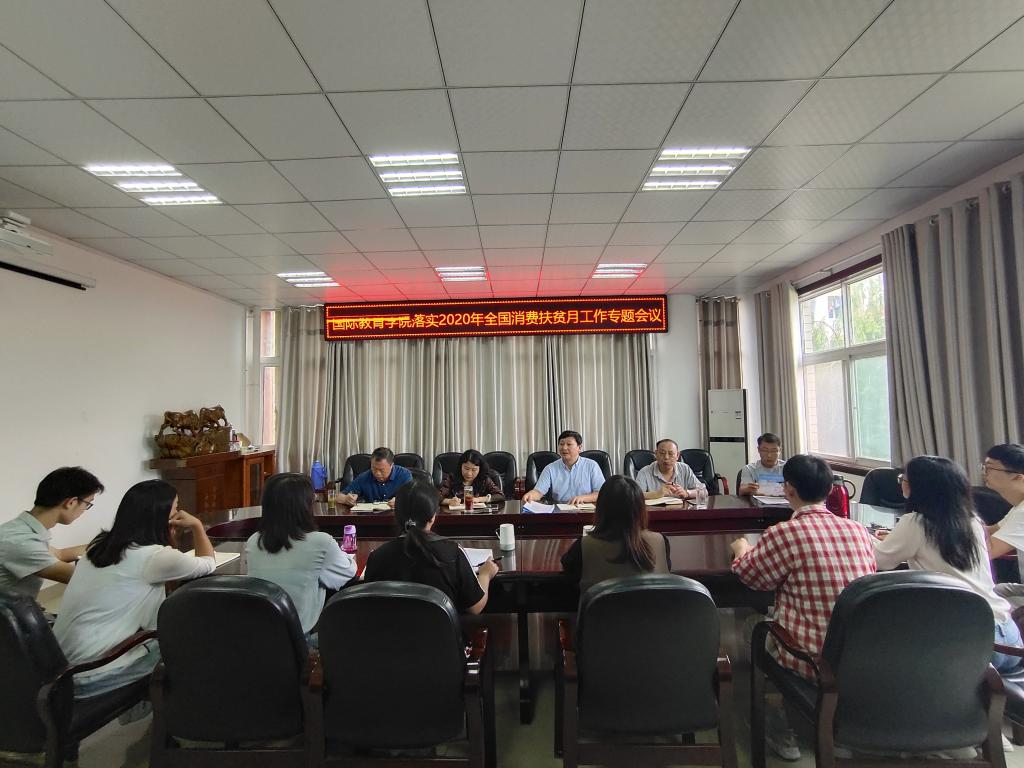 学院党委书记张震传达了《信阳师范学院2020年全国消费扶贫月活动实施方案》文件精神;学院党委副书记姚新春通报了《英国365上市公司落实全国消费扶贫月活动实施方案》。