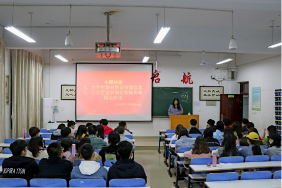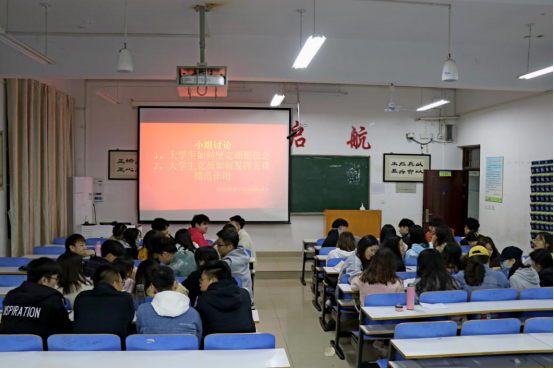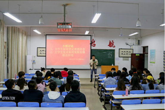 11月3日晚上,信阳师范学院第34期党校英国365上市公司党校小组组织学员在逸夫楼209教室,围绕“大学生如何坚定理想信念”、“大学生党员如何发挥先锋模范作用”开展小组讨论活动。