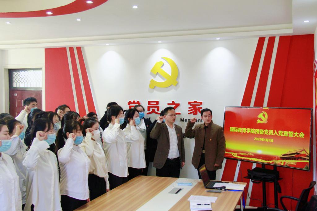 会上,院党委副书记付春锋宣读了中共信阳师范学院委员会组织部关于同意接受石景齐等61名同志为中共预备党员的决定,带领全体预备党员面向党旗进行了庄严宣誓。
