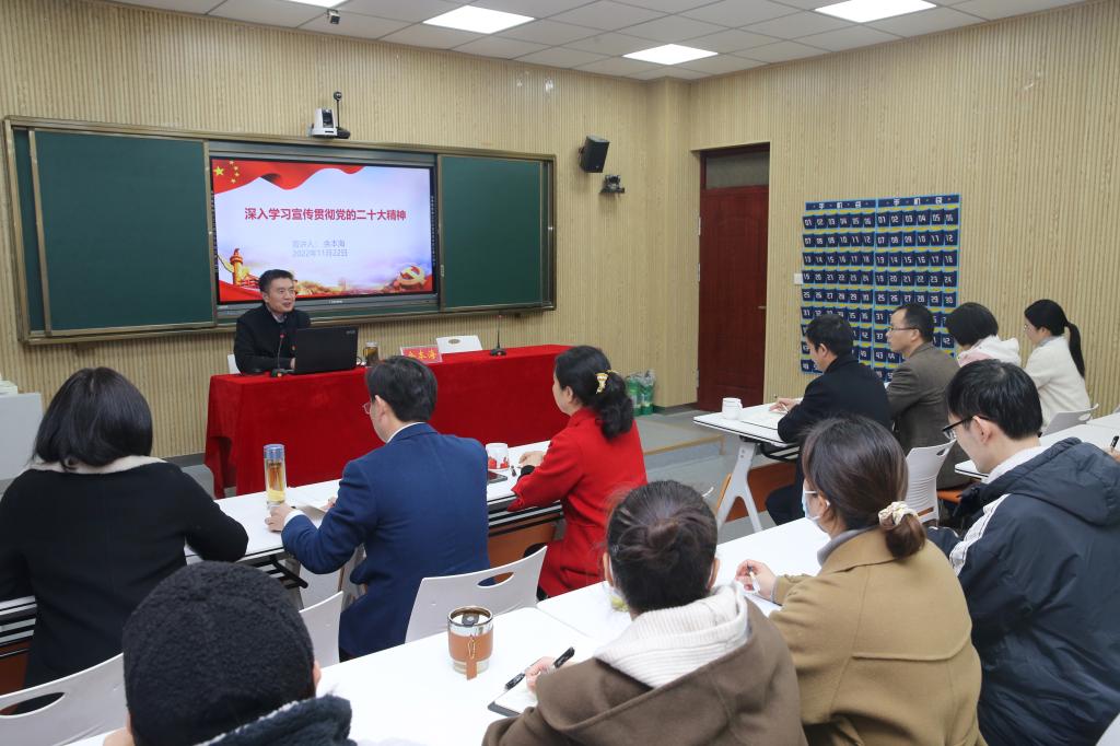 11月22日下午,副校长余本海在逸夫楼201为英国365上市公司师生宣讲党的二十大精神。我院党委理论学习中心组成员和师生党员代表聆听了宣讲。宣讲会由院党委书记李舟主持。